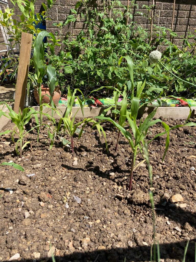 Earlier in the summer I did a little experiment in the garden. The summer took so long to arrive all of my seedlings were undercover and running out of space so I planted 1 sweetcorn out convinced I was sending it to its doom. The slugs had eaten everything else, it was cold and wet and indeed the slugs ate the outside leaves and it started to blow over but then… Then the summer arrived so I surrounded the stumpy leaning sweetcorn with its sprightly intact tray mates and, it thrived. It sucked in the sunshine and the additional nutrients it had enjoyed for longer and grew taller, straighter and greener than all the rest.